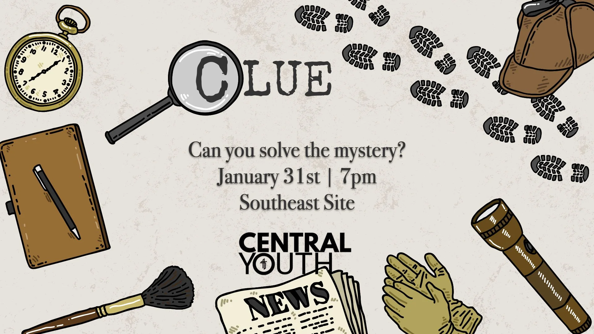 CYM | Clue Friday, January 31, 2025 7:00 PM 9:00 PM 19:00 21:00 Southeast 4357 Savaryn Drive Southwest Edmonton, AB, T6X 0J9 Canada (map) Google Calendar ICS On Friday, January 31st, Central Youth are invited to our Southeast site to play an immersive game of Clue! Move from room to room, interviewing characters and gathering clues—then propose your solution. Will you be able to solve the mystery?