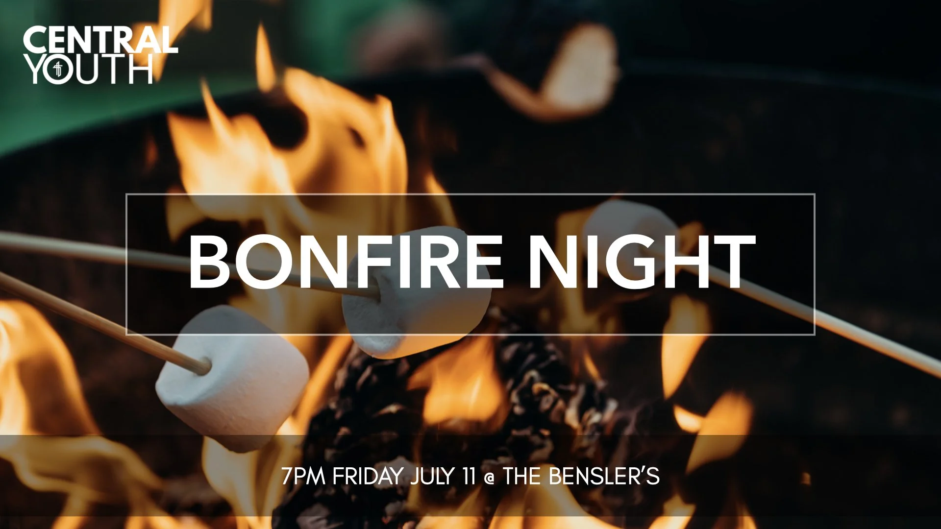 Join Central Youth Friday, July 11 from 7-9pm for a bonfire! This event will be low key with some snacks, a devo, and some games. Come on out and bring a friend as well!
